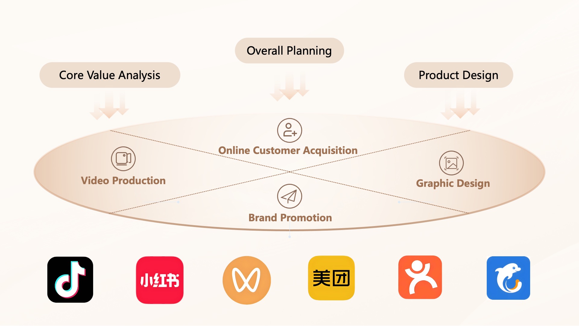 Its services cover overall planning, brand promotion, online customer acquisition, graphic design, video production and event planning. By deeply operating accounts on multiple platforms including Douyin, Xiaohongshu, WeChat, OTA platforms and Dianping, it creates a closed-loop marketing and customer acquisition system featuring "content creation – product development – traffic generation – customer conversion".